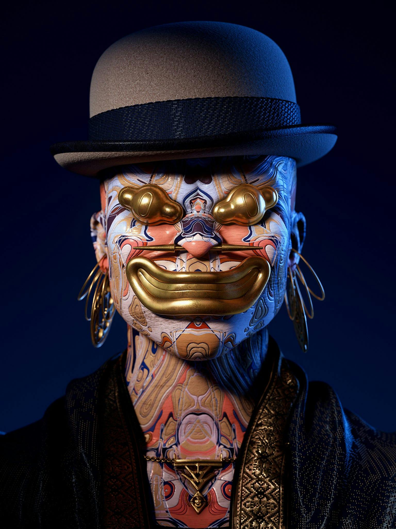 Vini Naso’s aesthetic is not easily defined, in its alchemic mix of different worlds, cultures, epochs. Naso is a self taught digital artist that explores the themes of beauty and identity in our ever changing and increasingly incorporeal world.He manages to assemble together suggestions coming from a remote past with inventions and ideas from a distant imagined future, and the result is a sometimes unsettling, sometimes seductive — but always awe-inspiring — mosaic made by myriads of visual references. With their meticulous attention to detail and textures, Naso’s creations exude a sense of hyperreality, like something existing in a very vivid, uncanny dream.Chiara Bardelli-Nonino