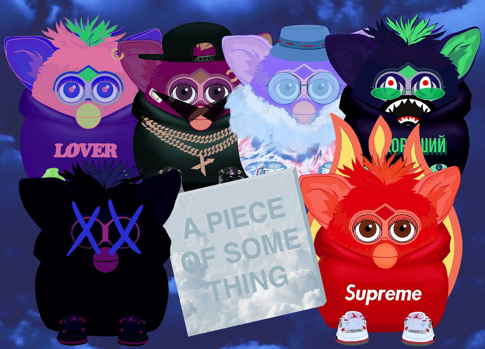 She released a collection of HYPEBIRDS, an ode to Furby and HYPEBEAST culture. They were paired, in scarce packs, with pieces of a fractionalized painting – SOMETHING. Purchase and open a pack and receive either a HYPEBIRD or one of 195 pieces of SOMETHING (each aptly named A Piece of Something). Those pieces interlock to form the meta painting, theoretically allowing a collector to “piece” it together over time.