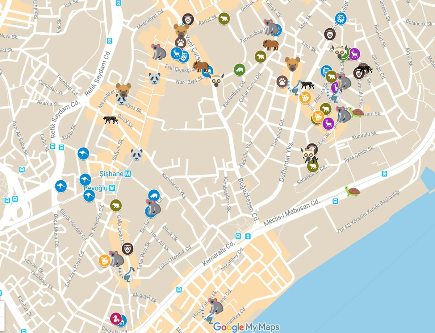 “In the ongoing project, approximately over 400 individual animals and almost 30 different species have been implemented. Each of them is marked with photos on Google Maps. Thus, viewers can also find the opportunity to experience the city with a completely different route and awareness perception. You can find the animals on Google Maps. Where you can see the street applications until today.”