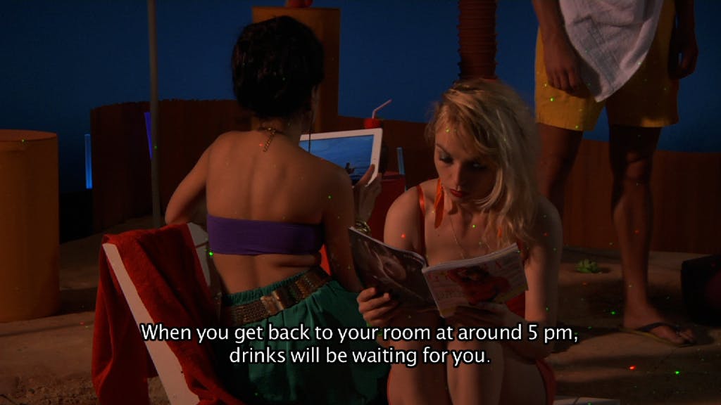 The exhibition is divided into three thematic sections, each one inhabited by a ‘host’, a fictional entity. Describing his NFT, Beloufa explains “In the exhibition Host B argues with two other hosts (Host A and C) about what the visitors should watch, think and consume as if it were the materialization of a politicized algorithm in a social network feed. Host B uses any argument it can to control the exhibition connected to its program. I was interested in the work as an NFT because it affirms its digital existence and, as stated in the exhibition, means the activity, life and value of the artwork are also on the internet.”