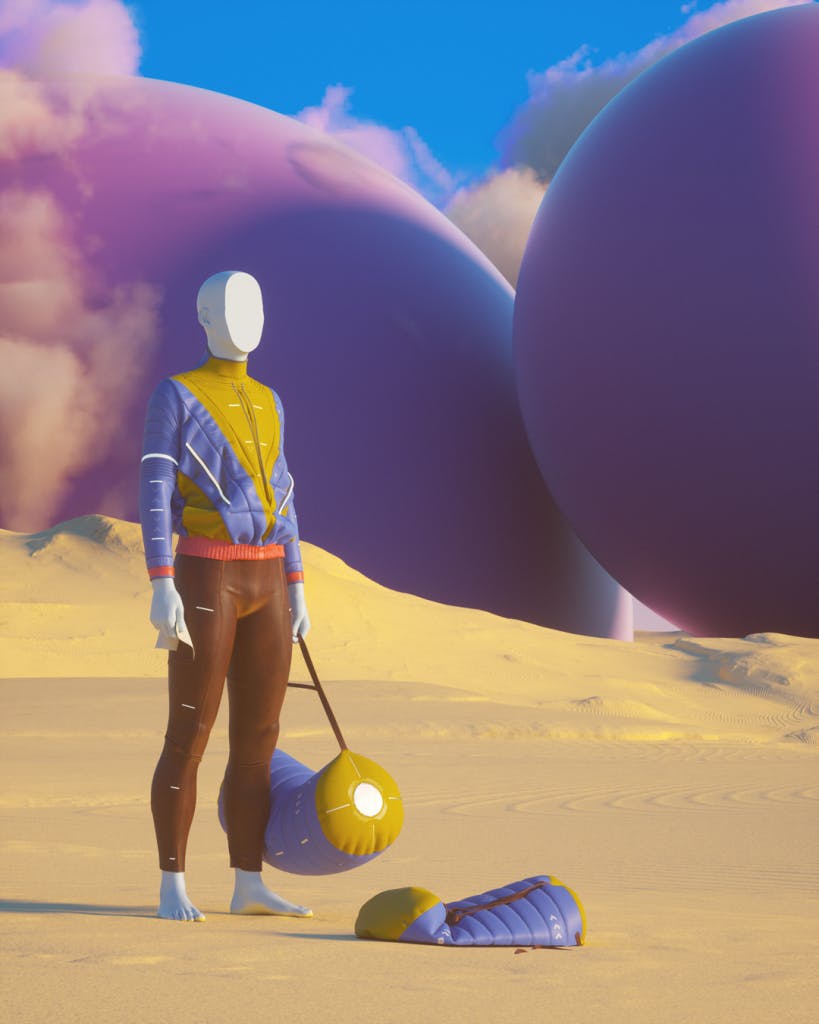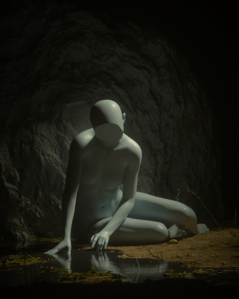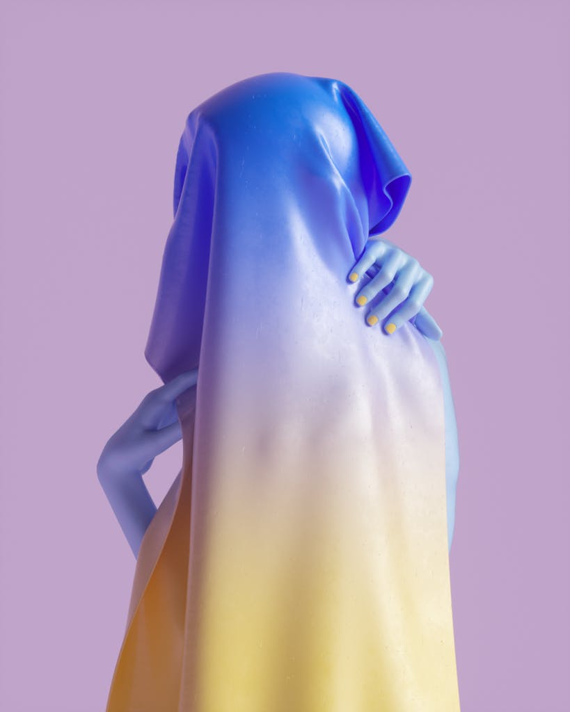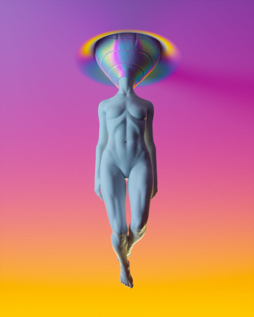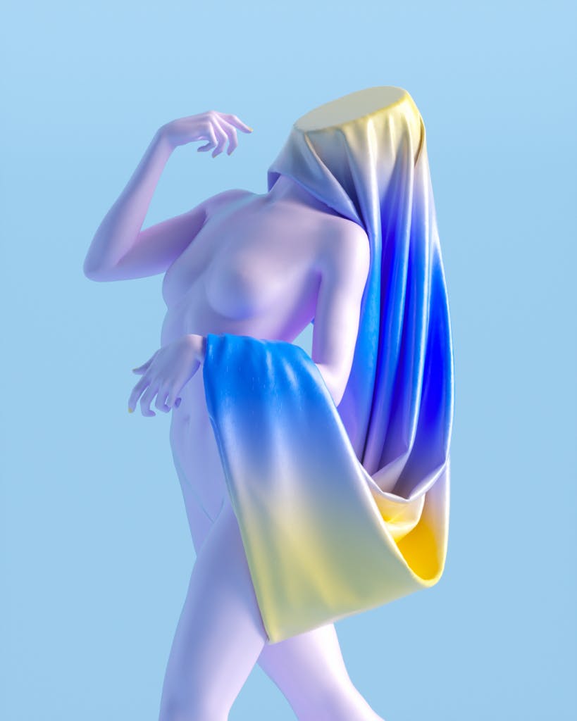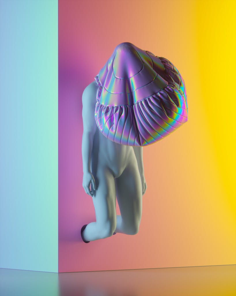 “European still lifes have never looked so cool, especially when the adept, digital-world-shaper Catelloo injects his faceless humanoids into their beloved contexts. Catelloo Gragnaniello from Naples, Italy, has a specialty, texturized alien textiles, full sized plaster mannequins with laser smooth chopped faces, and a knack for color complementarity that isn’t easily repeated.