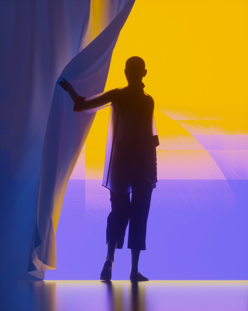I tended to hide or delete facial expressions in my work from the start. I’ve always focused on expressing emotion and feelings through shapes, colors, body language and lights. All conveyed from works that feature faceless humanoid characters.