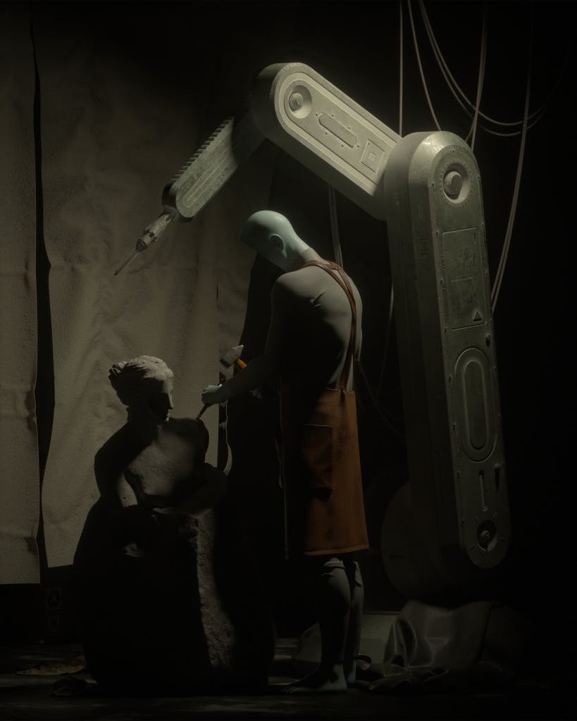 I went deeper after that, imagining a future where Artificial Intelligence acts on the Earth mimicking what humanity have done and felt in their lifespan on this planet. Through the highest form of flattery: emulation.