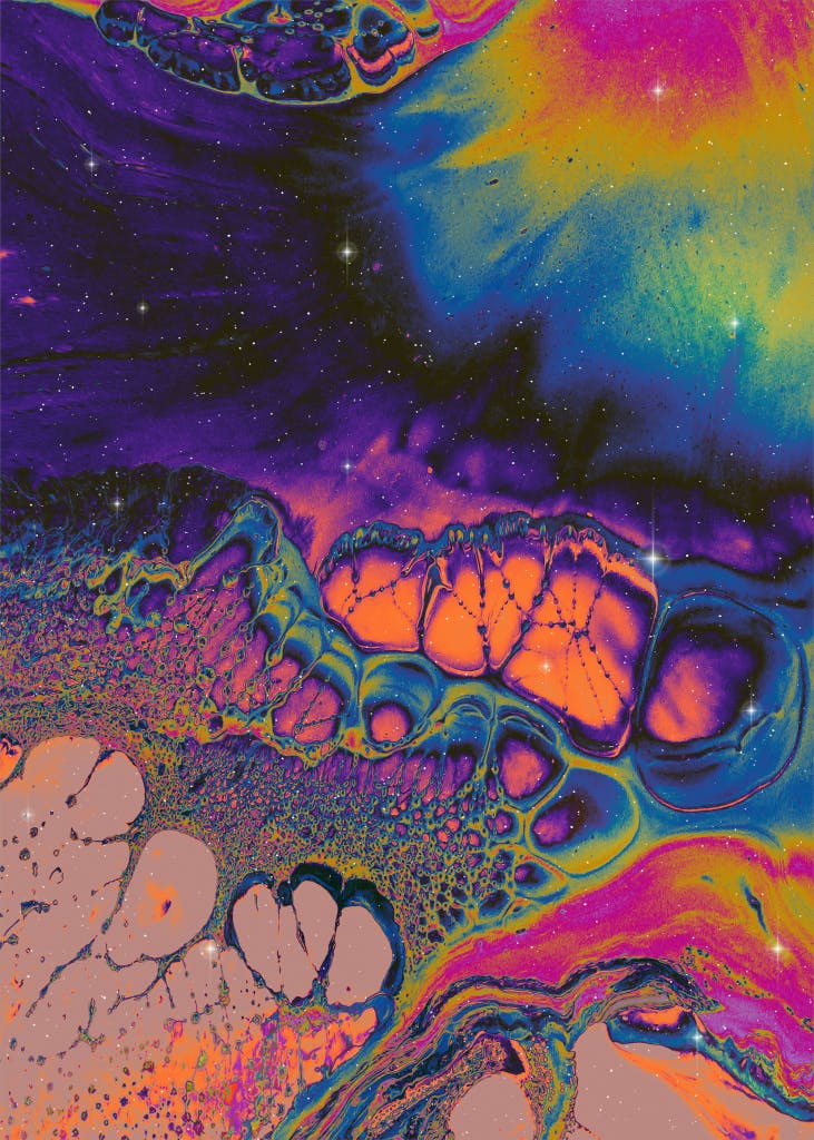DC: In your works you play a lot with a colourful liquid formation. Does it play a role in depicting a Solaris, collective consciousness? Or is it something else in your meaning?