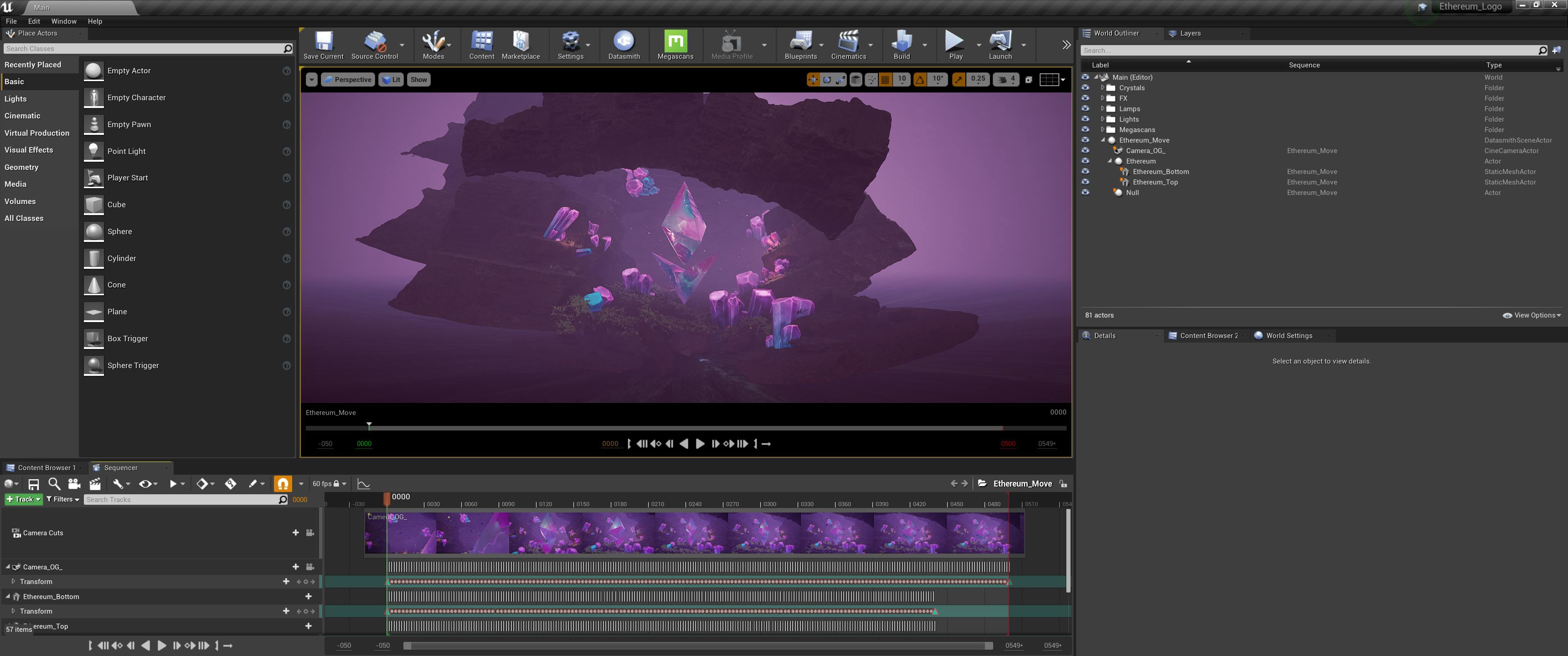 Once the Ethereum and camera moves are saved in Cinema 4D the project file is prepped and ready to be brought over to Unreal Engine where the scene will continue to evolve building a dynamic cave around our hero.