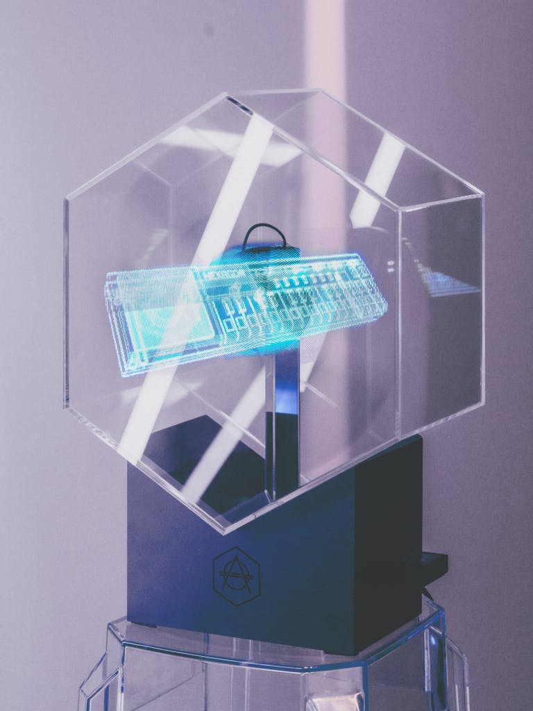 Don: For my GΞNΞSIS (1 of 1) piece I wanted to create something very special. This NFT is a magical combination of three elements: a never before heard song, an animation and it comes with a hand-built hologram cabinet + cartridge to display the art in a truly unique way in your living room. I started working on this particular song at the beginning of my career and have continued working on it every single year from that moment. I must have spent over 250 hours in total on the song and never found the right purpose or timing to share it with the world, up until now. The animation of the hologram synthesizer is based on the very first keyboard I bought as a kid, to make things truly full circle. The idea for the hexagon hologram cabinet (HEXAGRAM) and the cartridge derives from my love for both Star Wars as well as old school Nintendo gaming consoles. My GΞNΞSIS piece is nostalgia mixed with my vision for the future of digital art.