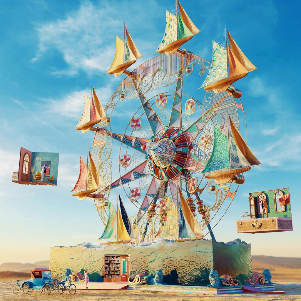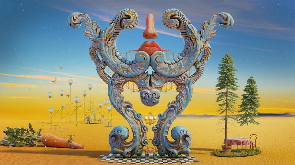 Vinicius Costa’s elaborate work gathers inspiration from the surrealist masters, Egyptian art, and nostalgic kitsch objects from the past and adds a twist of saturated colors. In this mix, close attention is always given to harmony between all the elements. Vinicius is drawn to imagining places you’d want to visit again and again (or maybe even in real life)—and making pleasant connections with people along the way.
