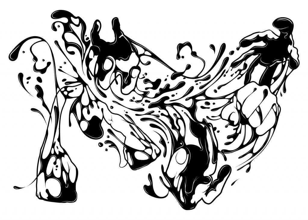 I used a spherical chrome object (an Ikea lamp) to photograph my arms and hands into different distorted positions. I played with the shadows as a way to blend the liquid into the volumes of my hands, creating a fluid composition that mixed the abstract and the figurative.