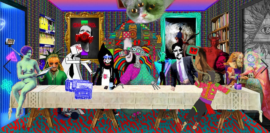 The crypto artwork “First Supper” completed in March 2020 is a milestone work of programmable cryptoart. This painting is not a simple static picture, but a programmable artwork composed of 22 layers. The work was jointly launched by the cryptoart platform AsyncArt and 13 artists.