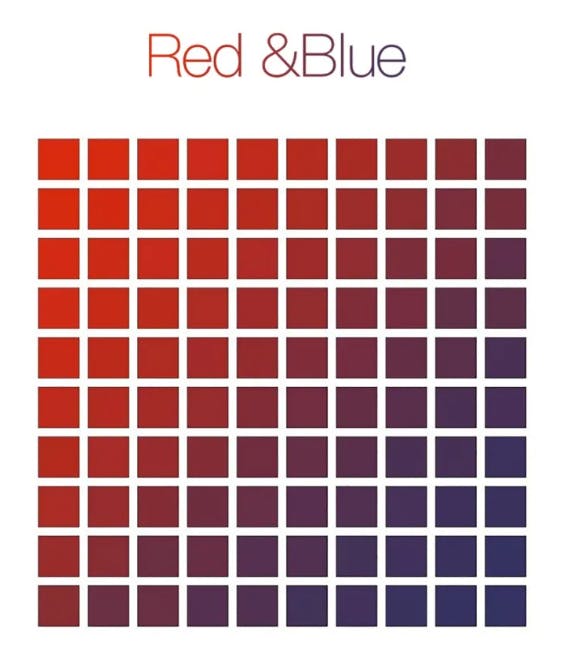 Chinese artist Liu Jiaying’s work “Red and Blue” (see picture below) released 100 gradients from red to blue through Ethereum and held a year-long auction. The audience can use 0.01ETH (about 2 US dollars) to auction their favorite color blocks. The artist Liu Jiaying did not tell the meaning of each color block in advance, but chose to wait for one year and observe the value distribution of these color blocks. Programmable cryptoart such as “First Supper” and “Red and Blue” have transformed the role of the artist from a creator to a curator, providing Token holders with free creation space within certain expression norms and themes, cryptoart works are essentially sublimated into a creative context, in which Token holders talk to themselves, to other patrons, to audiences, and to artists, in a visual art vocabulary.