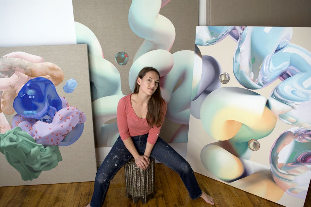 I have always been fascinated by technology and how it is integrated into our lives. While I was studying at university between 2011-2015, I was completely drawn in by the conceptual net art of the 90s, along with the colourful vapour-wave utopia of my Tumblr feed. I witnessed a new generation of contemporary Post-Internet artists starting to emerge, and I was fascinated by painters who were able to flawlessly flow between traditional and digital tools. It felt to me that they were pushing the medium forward, and that the only proper way to reflect the world I was living in was to embrace digital technology and use it to augment traditional painting–to use the computer as both a practical tool and a creative collaborator.