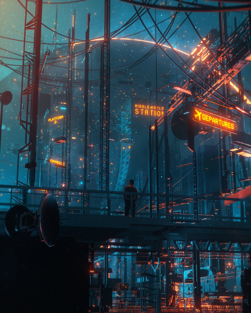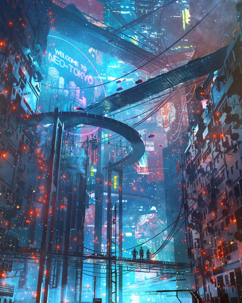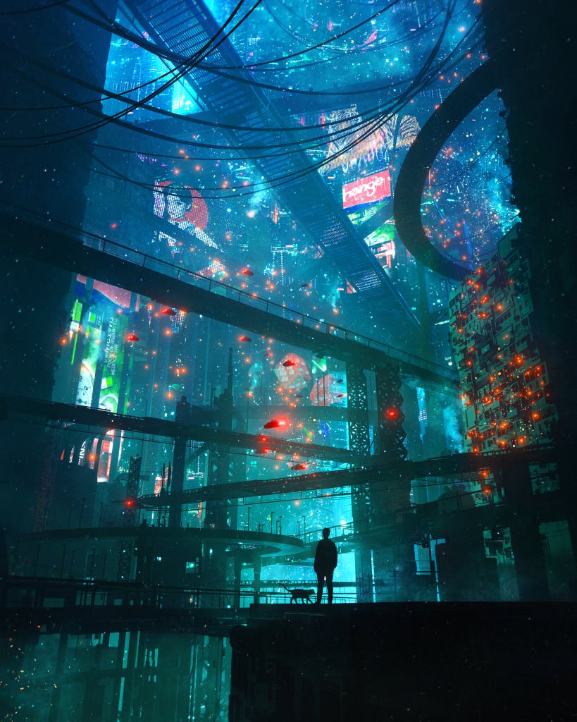 My work is heavily inspired by Cyberpunk and Sci-Fi cultures in general, so I enjoy both the cyber/android side, but mostly the City side. I think the Cities, in general, represent the evolution of technology better than anything else and that’s what fascinates me.