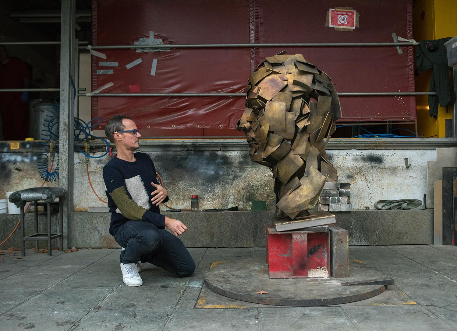 While portraiture is frequently viewed as a traditional genre, Yeo has not shied away from experimenting and embracing technology in his practice. In early 2016, the artist was asked by Google to help develop their groundbreaking drawing software for virtual reality, and at the same time began looking at how new technologies such as 3D printing and photogrammetry could be used to make portraits. In December 2017, he unveiled his first large-scale sculptural work, Homage to Paolozzi, made using an innovative combination of these new processes at London’s Royal Academy of Arts.