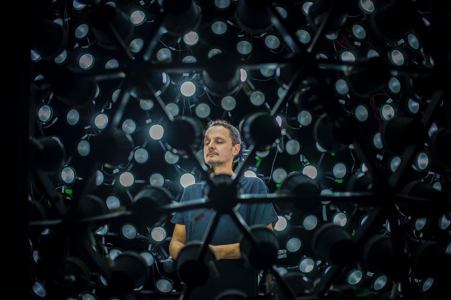 The power of 3D in self-portrait particularly intrigued Yeo who says, “Our own image is something we’ve never seen in 3D. We see ourselves in the mirror from a restrictive set of angles. Photographs and videos merely provide distorted images. We can’t see what we look like from someone else’s point of view”. The artist had a 3D scan of his body made using a light stage scanner, the technology used for Hollywood special effects. With the scan, Yeo can see himself in a new light and walk around himself as if looking at another person, a strange and completely new experience.