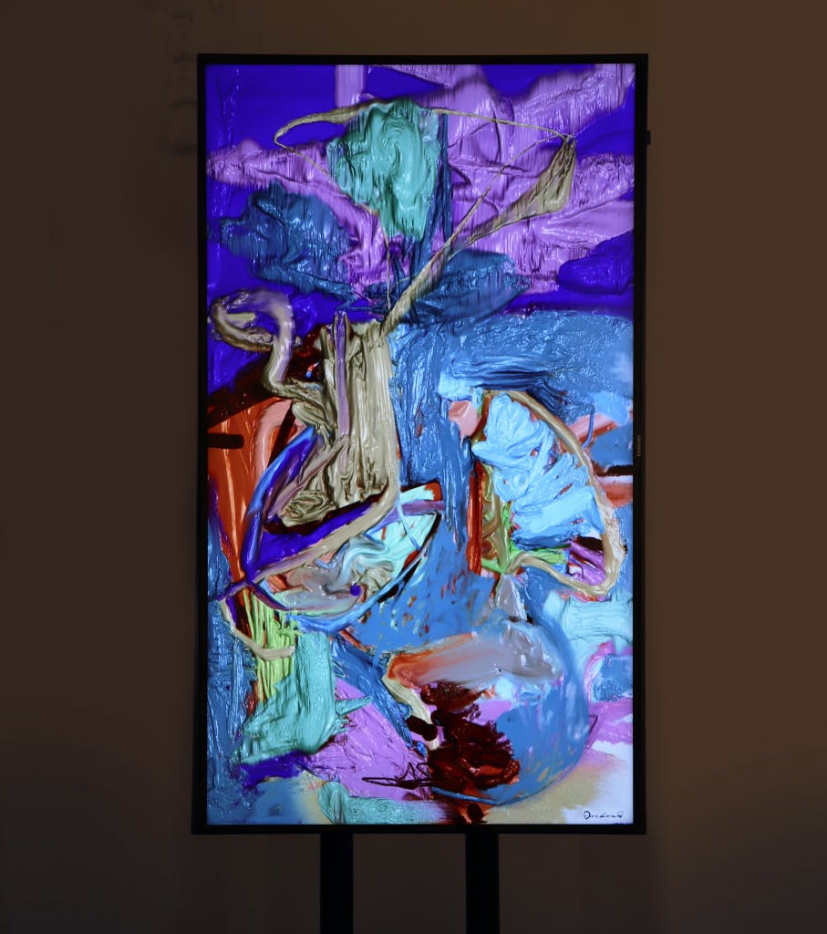 A: The process begins by uploading my singular brushstrokes to the algorithm, so my individual freedom is expressed in those gestures. Afterwards the algorithm combines those brushstrokes and creates a painting. Since I have no control over it, it is natural that I don’t like every result. However, this part of the process I consider a collaboration with the algorithm. Where in the end I choose which abstraction I am going to pursue in the series.