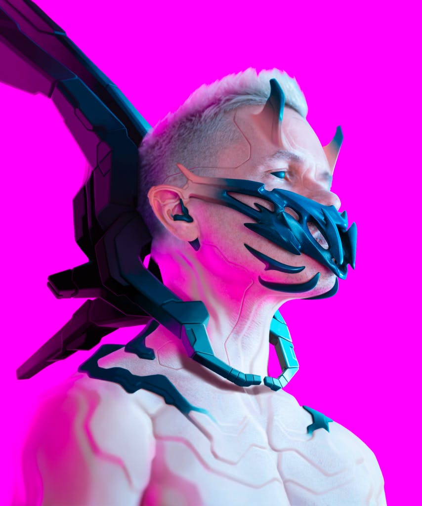 My first cyber drop is a collaboration with my friend @R66 who provided his physical mask for this shoot. Cyberpunk is an old genre of audio visual art, but definitely not exhausted. I want to update the perception of this field with another old genre of Fantasy. I created this piece with a SONY 7R2 camera and then edited it in Procreate on an iPad Pro. Full size image: 3879 x 4654 px.