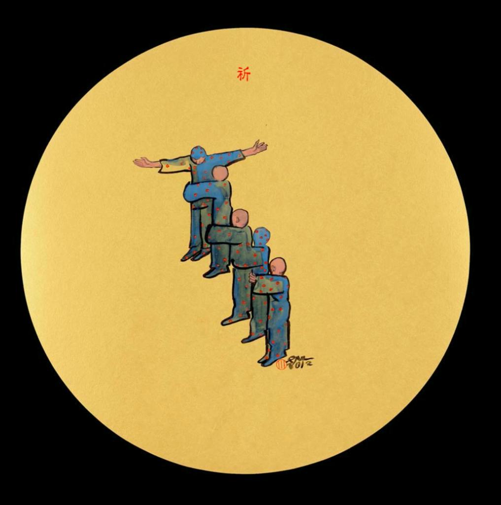 ‘Prayer’ express Yuan’s wish of the inner kindness and peace that people should have for each other, expressing an attitude of treating people equally, spurning selfishness, abandoning all burdens and boundaries. Also, this work is seeking to better represent the connection between people in terms of spiritual power. The ‘huggie’ symbol is not just a purely material substance, but also intangible and abstract. The subjects of ‘Prayer’ are infinite and unlimited– it can be a religious symbol, nature, or any other subject that can receive feedback of spiritual power, including the behavior of embrace itself.