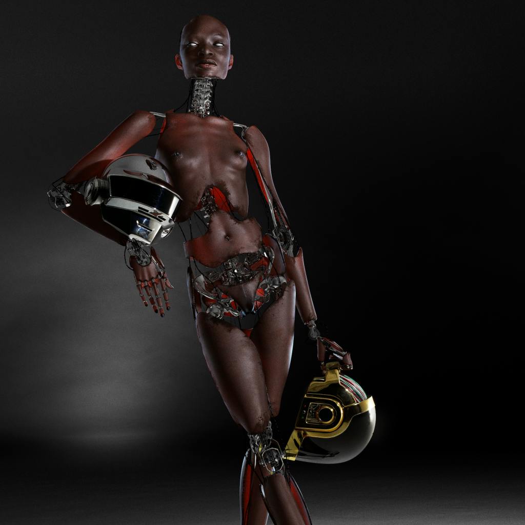 5197×5197 px at 300 DPI mixing digital photography and 3D. At the end of the day the Daft Punk were gone and I remain at the studio with the model and the 2 helmets. This is the fourth image from the series “The Keeper”. An important series for my career that I shot with Daft Punk for Lemon Magazine. When thinking about Daft Punk I had this coming to mind: Does the intervention of machines / masks on our bodies enable us to get closer to whom we truly are? I proposed the magazine to shoot Daft Punk integrating a 3D cyborg woman into the existing pictures, thus proposing my own vision of an augmented human being. The woman being the keeper of their secret identity. Debra Shaw was the model I work with to create the body language of the cyborg woman, she was then removed and replaced by the cgi model. The series is composed by 6 images in single edition, no other copies have been sold until now and no other copies will be sold. These images will only remain in the blockchain