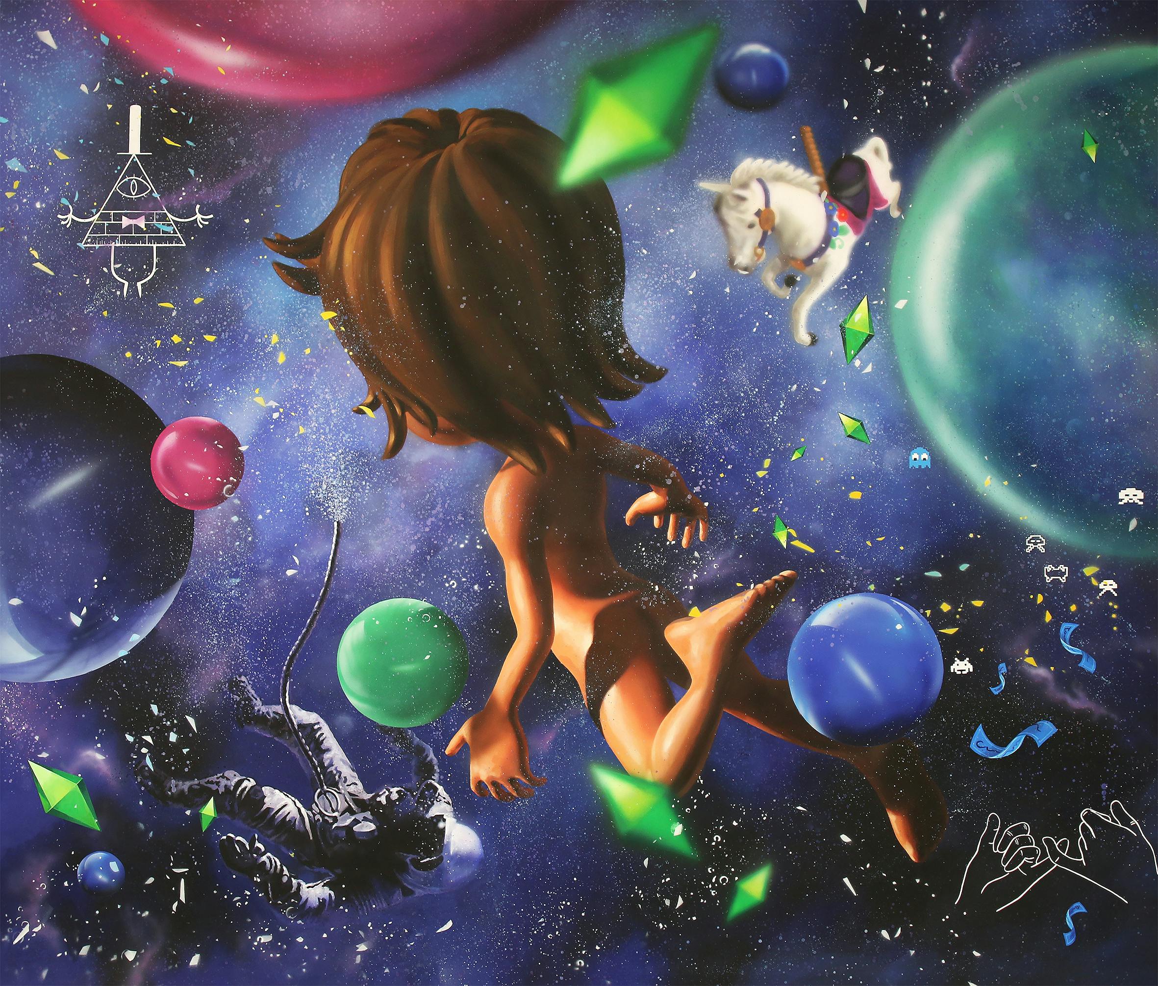 All his works of art are born in a digital environment, that is, they are the product of the use of digital processing software like Photoshop or Cinema 4D, which subsequently undergo a further process of refining in the analogic dimension of traditional painting. His works can, therefore, take the format of Jpeg, Gif or MP4 files, but they might also have the physical consistency of drawings on paper or canvas paintings, hand-crafted with an almost maniacal precision. This combination of procedures, this multimedia, not only defines the extension of his field of action but it corresponds to a programmatic will to address a much wider audience than the one conventionally restricted to contemporary art. So, Motta wants to transmit his visual message to a virtually much extended public, which includes Baby Boomers and Generation X, Millennials and Generation Z.