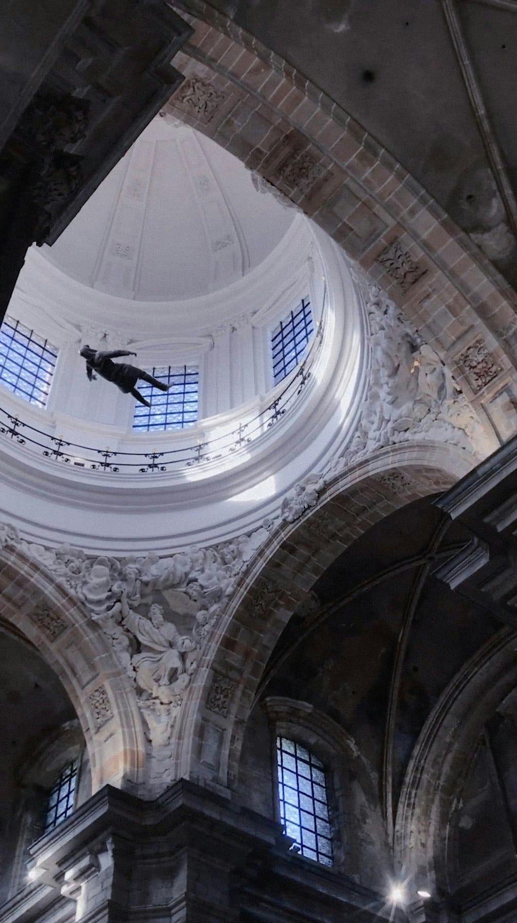 In my latest series ‘TIME PORTAL’ I’m using the physical medium of Cathedrals to create these ‘Moving Paintings’, transporting me back to my kid-self, experiencing this haunting feeling looking towards the ceilings in church. It’s strange as I never had a strong fear of heights but somehow I could always vividly imagine myself floating among these eerie heights, it made me feel anxious.