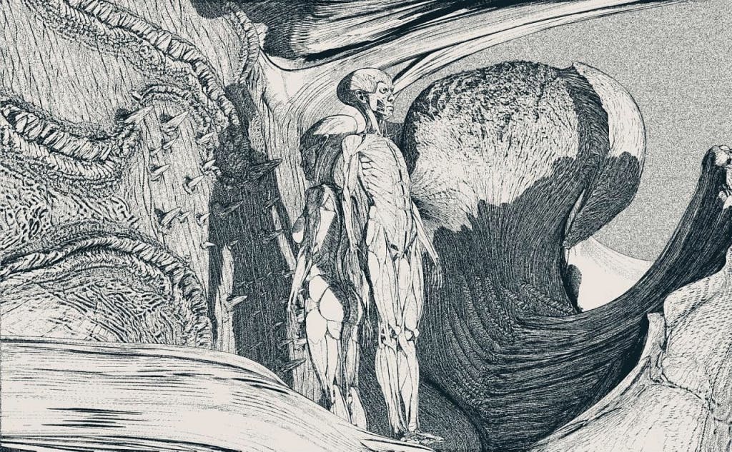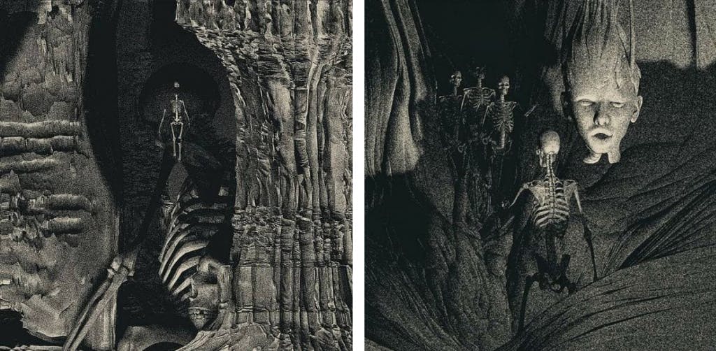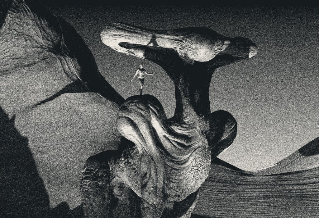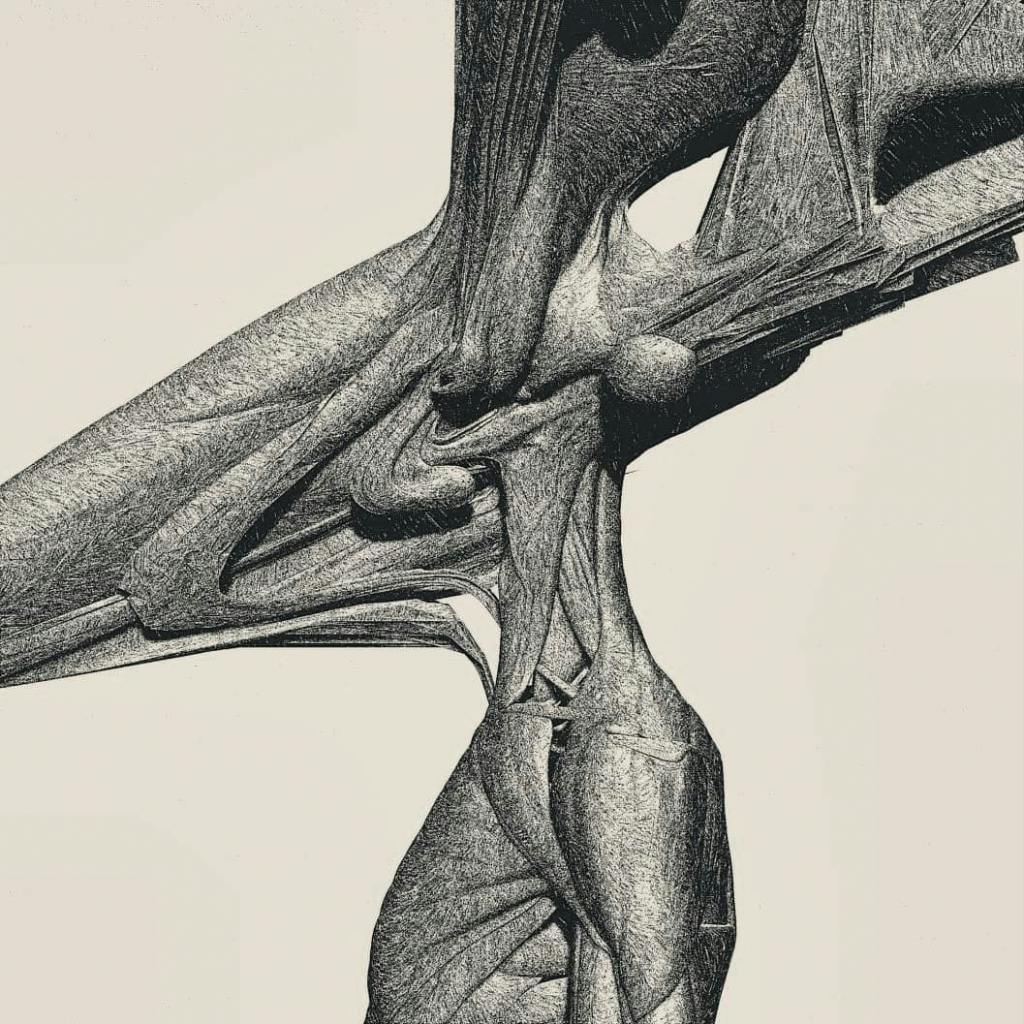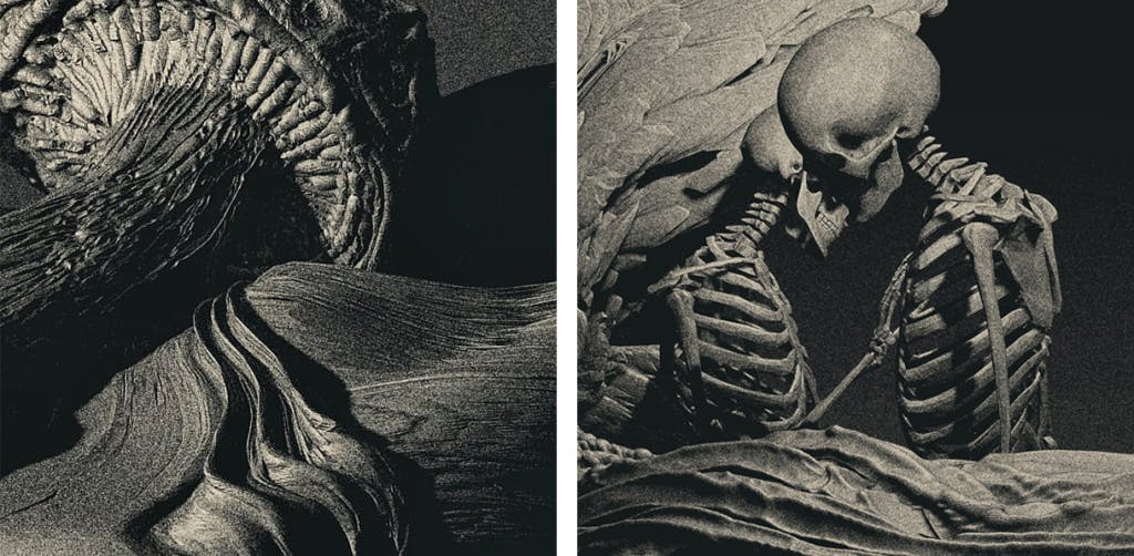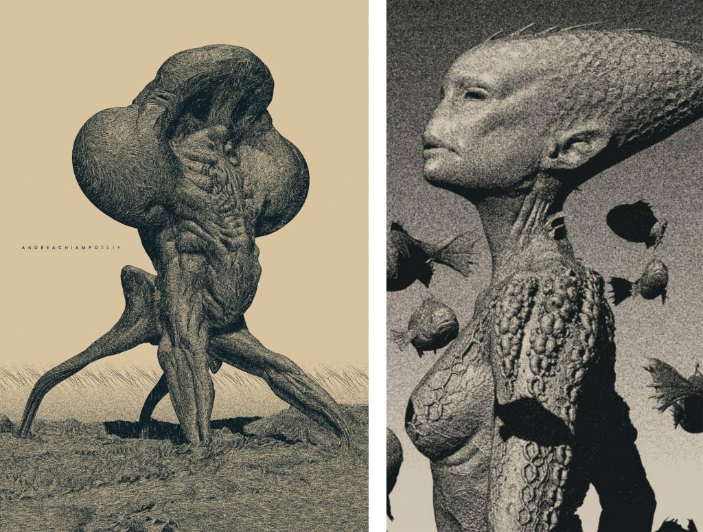 What at first sight might be misunderstood as an antique and eerie lithography is instead the result of Andrea’s digital sculpting and 3D rendering.
