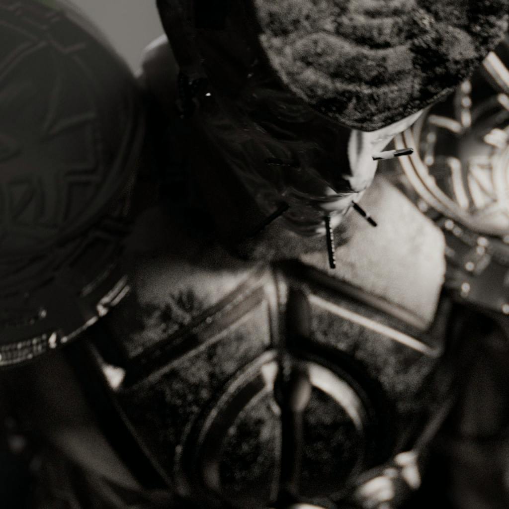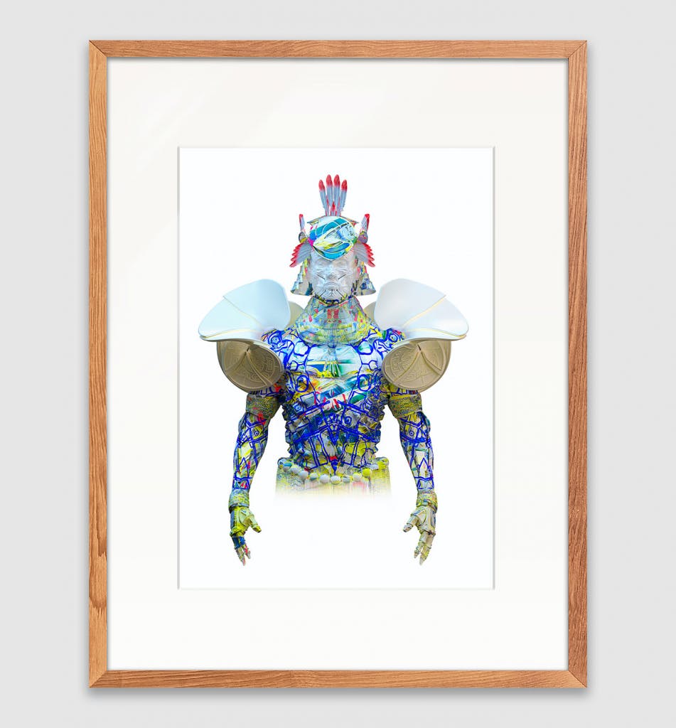 I wanted to combine Japan Samurai Warriors and Indigenous Groups at the roots of Brazil, I saw similarities between them and found ways to visually fit the references together by listening to what the artwork was saying and find what was relevant and what wasn’t. I tried so many variations, I was looking for something, but I didn’t know what exactly. I choose a direction, open it up as much as possible, and feel what the piece needs giving it its meaning.