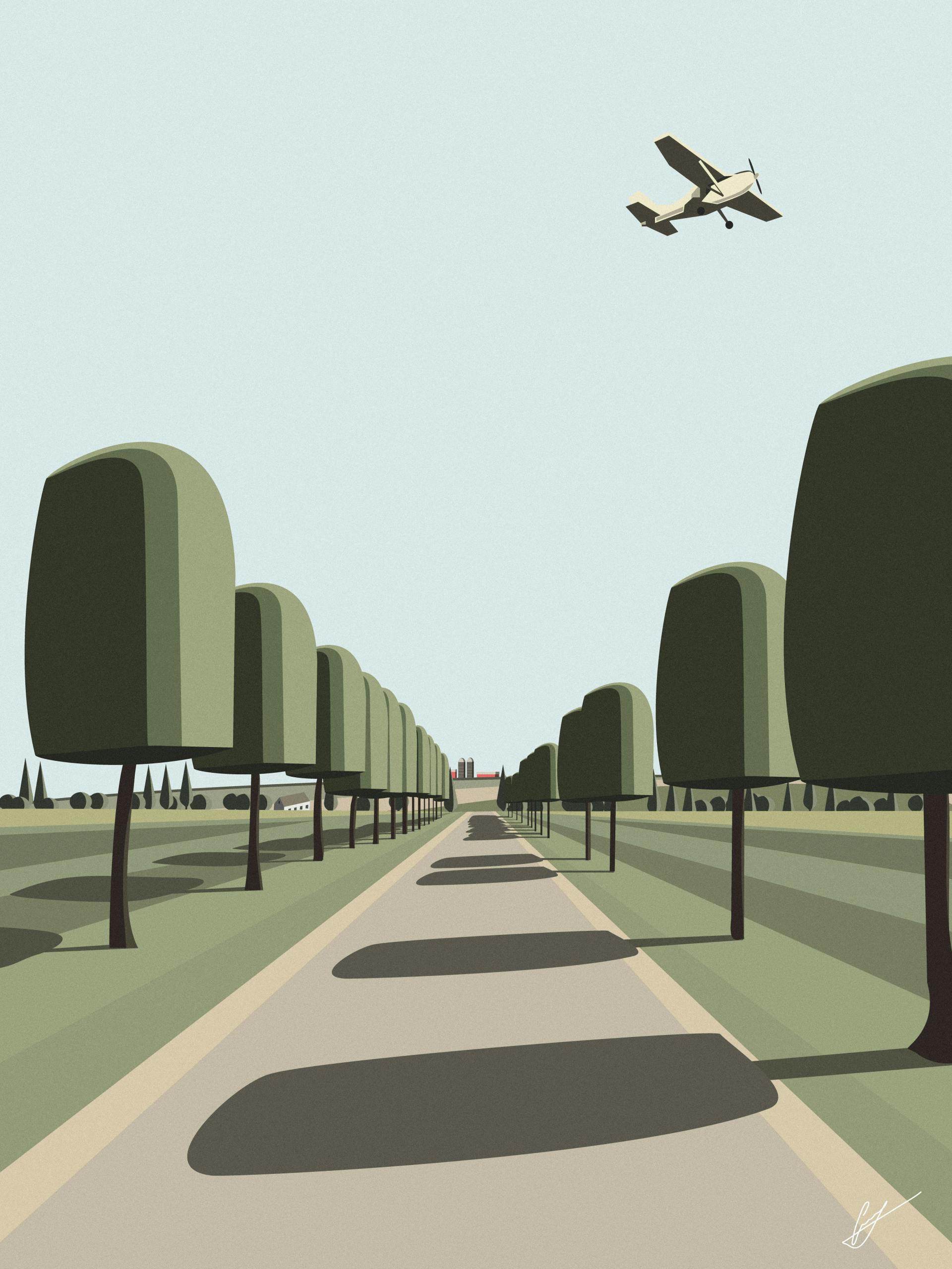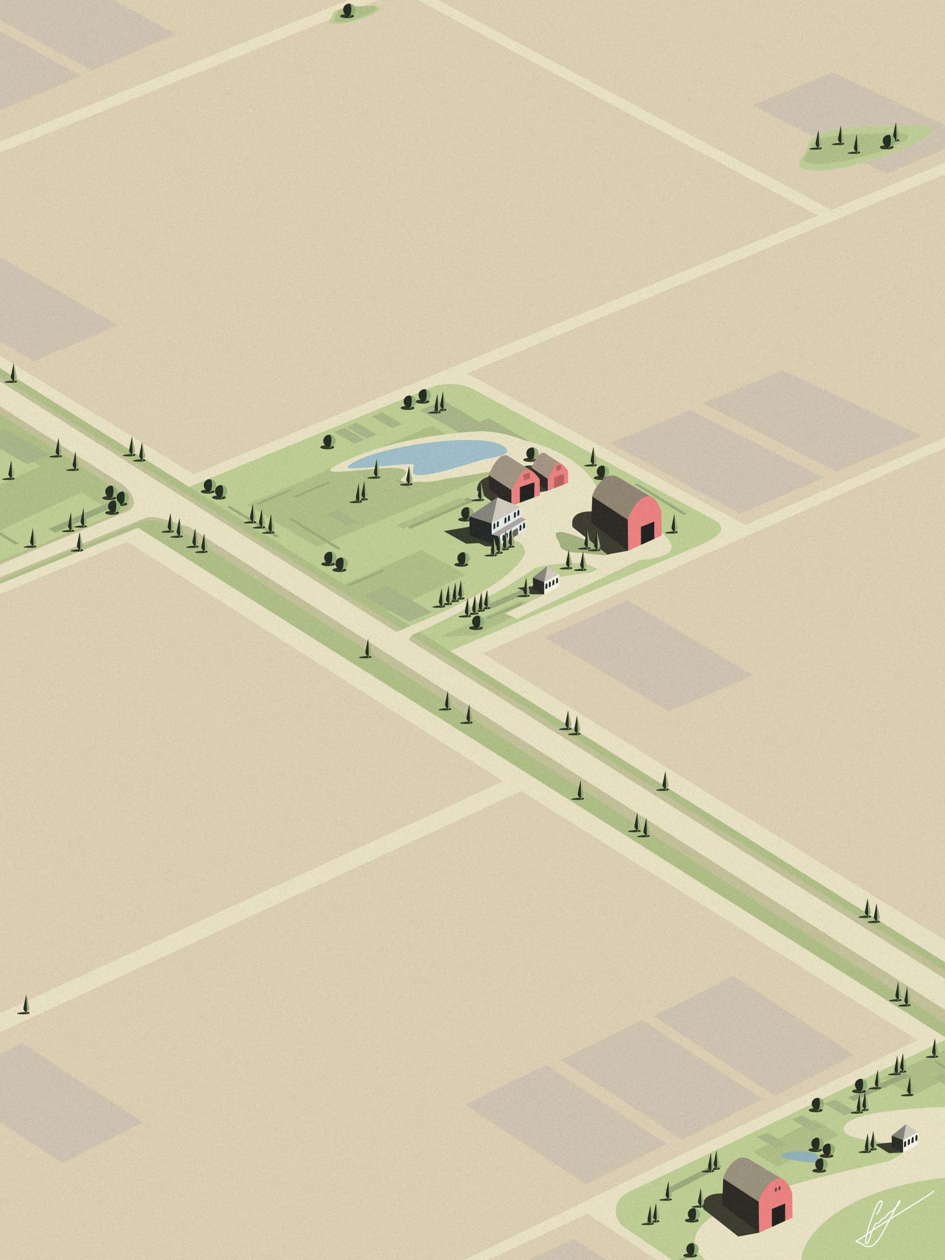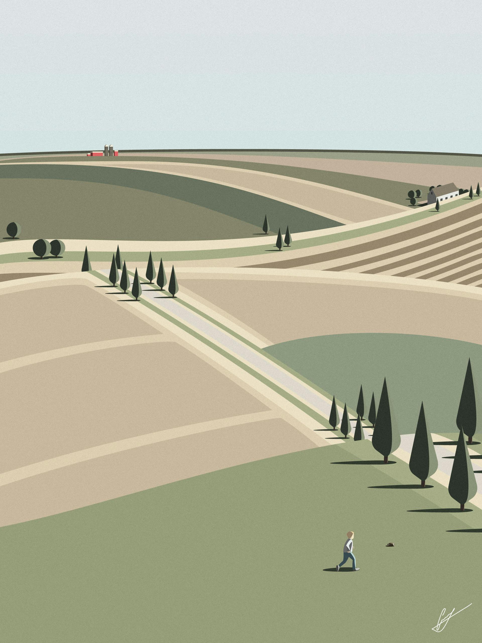 A good friend of mine out here in Wisconsin, Kenechi Unachukwu, is a renowned film photographer. Many of his recent works have been documenting the Wisconsin landscape and so we take long drives out into rural Wisconsin where all we see are these breathtaking scenes of rolling hills and farmland. This is where the seed is planted. I snap some photos and create a composition in my head. From there it is straight to my computer. With a mental sketch I have in my head I go to illustrating. To be honest the hardest part about creating these pieces is picking the right colors. Colors in an illustration will make or break your composition and sometimes I sit on my computer for days on end just rearranging colors until I am satisfied. As a perfectionist, I am willing to spend hundreds of hours into finding the exact colors I need for an illustration.
