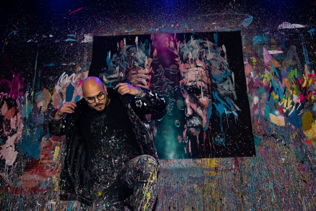 David Garibaldi (b. 1982) established himself in pop culture with his eclectic painting style, creating life size street art paintings on canvas in under 10 minutes. He’s performed at the NBA Finals, Sean “P Diddy” Combs’s birthday party, the White House at the end of the Obama Administration, the Olympics in Sao Paulo Brazil, opened for KISS on their farewell tour, was a finalist on America’s Got Talent, and created a series of music videos for JUICE WRLD’s posthumous album (all of which went #1 on YouTube).