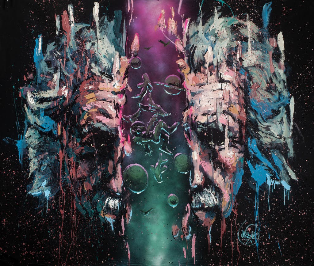 The rapid and choreographed nature of David’s style add to the beauty and impulsiveness of his work. Theory of Imagination centers around David’s artistic interpretation into the mind of Albert Einstein.