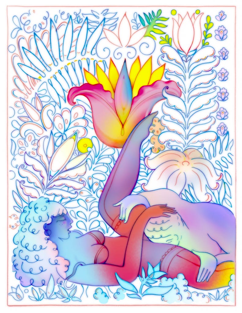Alphachanneling’s art uniquely confronts cultural taboo by celebrating sexuality in a holistic exaltation of the carnal and spiritual. With an enthusiastic audience of 1.4 M followers on social media, the underground artist manages to be both elusive and massively present at the same time. Published by Playboy, reviewed by art critic Jerry Saltz, featured in Vogue Magazine’s Top Creative Influencers. The artwork has achieved international resonance through media and gallery exhibitions.