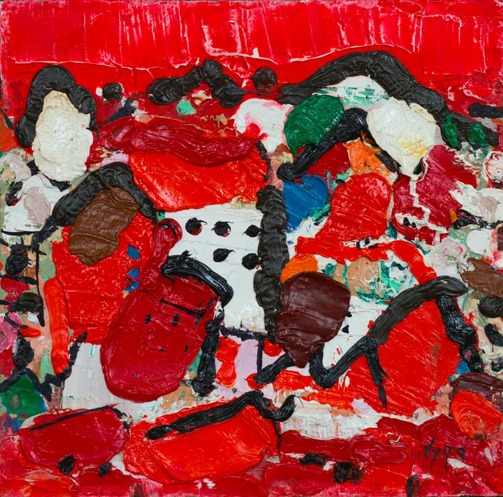 The abstract town on fire licked by flames. Deadly, yet so beautiful. The artwork was painted using oil on canvas. This foundation is based on the collection of artworks by the painter Vigintas-Vyga Stankus (1962 – 2018). https://www.vyga.lt