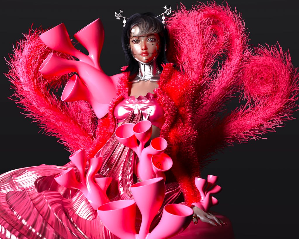 Ruby9100m is a trans-human digital being that is RUBY GLOOM, pushing the boundaries of reality and digital ingenuity. Her creativity and persona has garnered respect across multiple industries leading her to collaborations with fashion and tech magazines, brands, artists and galleries. Ruby has become a self evolving identity of her creator’s vision and a symbol for an open, accepting and visionary digital future.