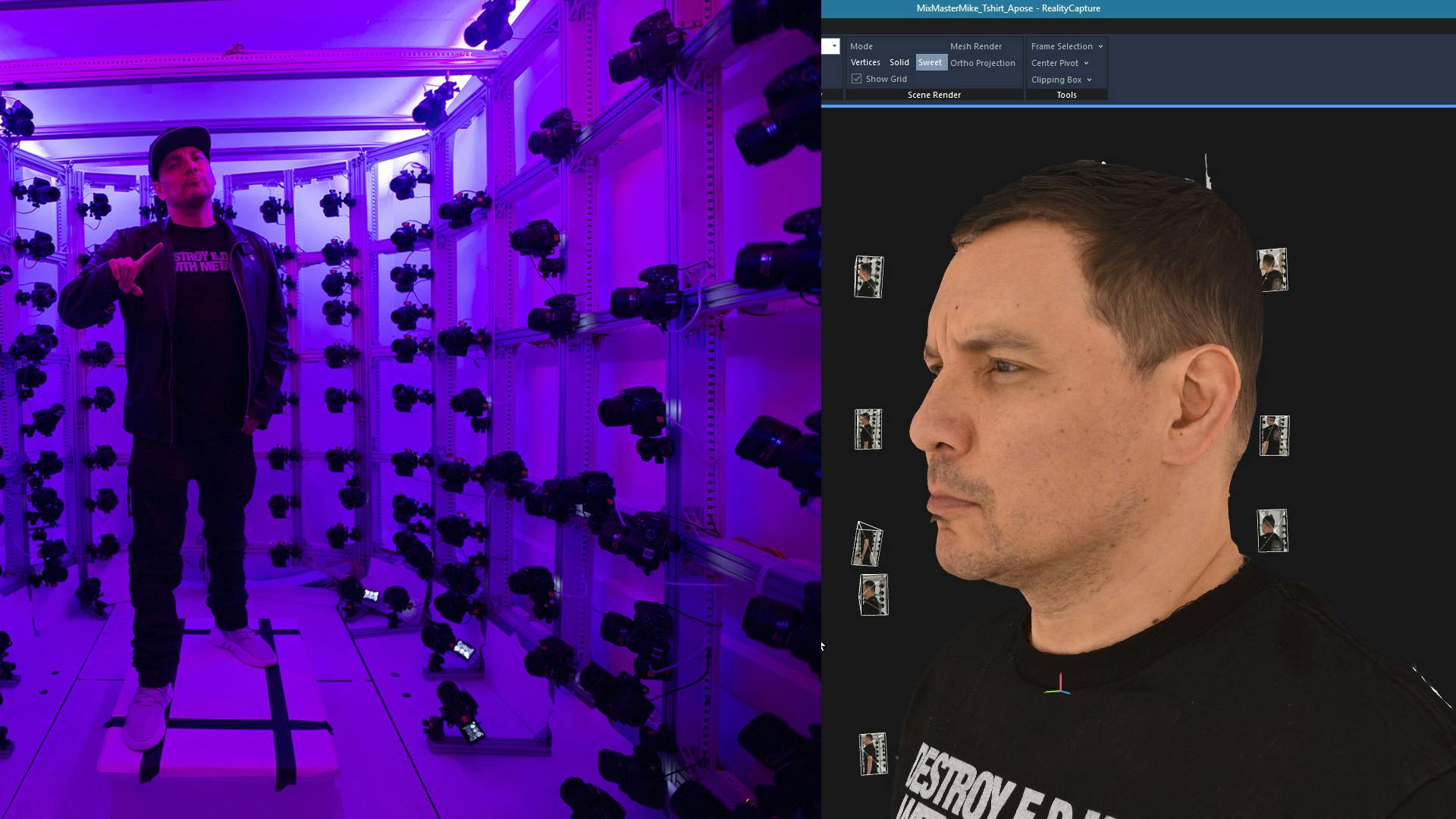 Always using cutting edge technology the pair also had Mike photoscanned using The Scan Truck in which they where able to get a photoreal 100% accurate 3d model of Mix Master Mike they could later use in 3d applications such as Cinema 4D and Unreal Engine. For those not familiar The Scan Truck is a mobile truck that uses a lot of DLSR cameras to take photos of a subject from all angles at once. The photos are later brought into a software called Reality Capture Studio which will use machine learning to stitch all those photos together and create a 3D model. This process in short is called photogrammetry.