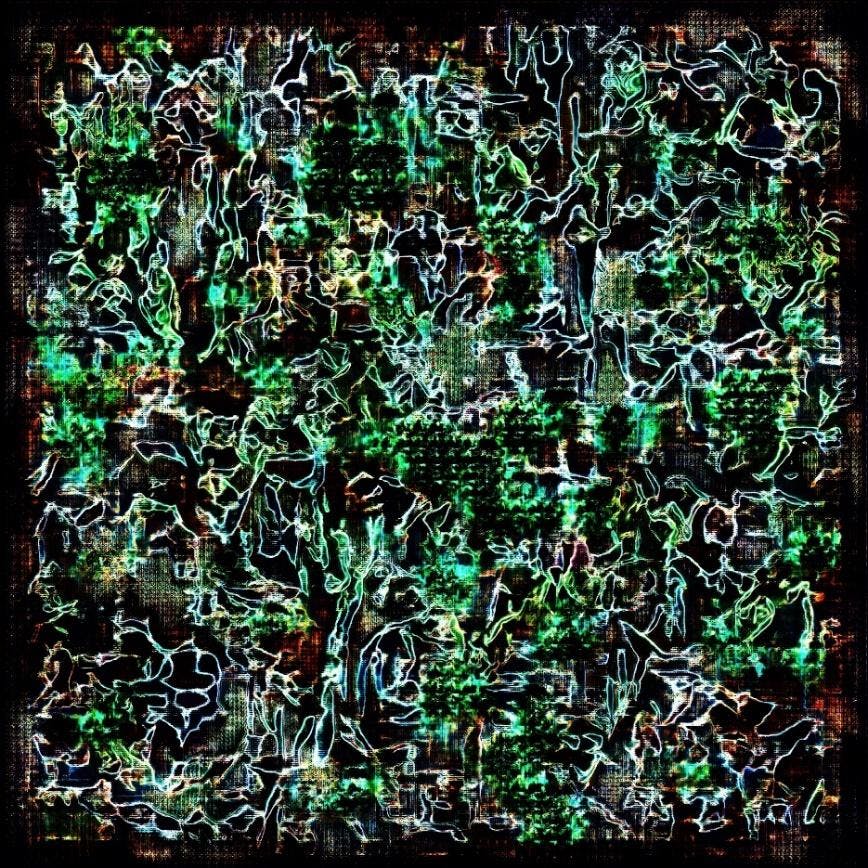 This work is at the conjunction of AI and oscilloscope art. The artist trained a machine learning neural network with a set of nude paintings and then ran an epoch of oscilloscope art. As the artist says, it is “a bright land between worlds, an imaginary place in the mind of a neural net where organic figures dance in the neon light.” Or do they dance in a digital forest?
