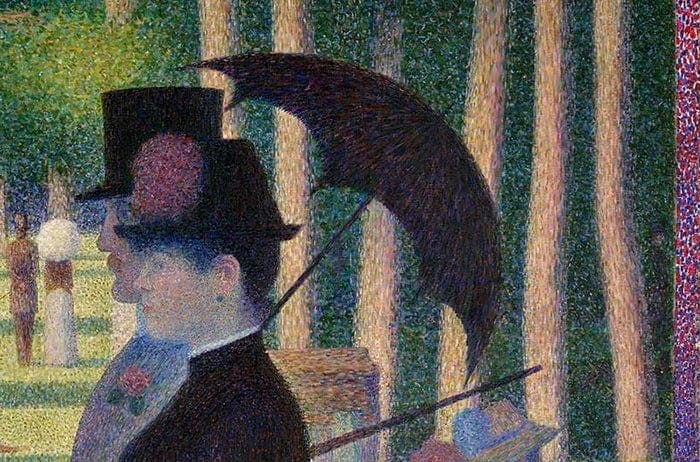 A Sunday on La Grande Jatte, 1884 by Georges Seurat (left), Detail shot (right)
