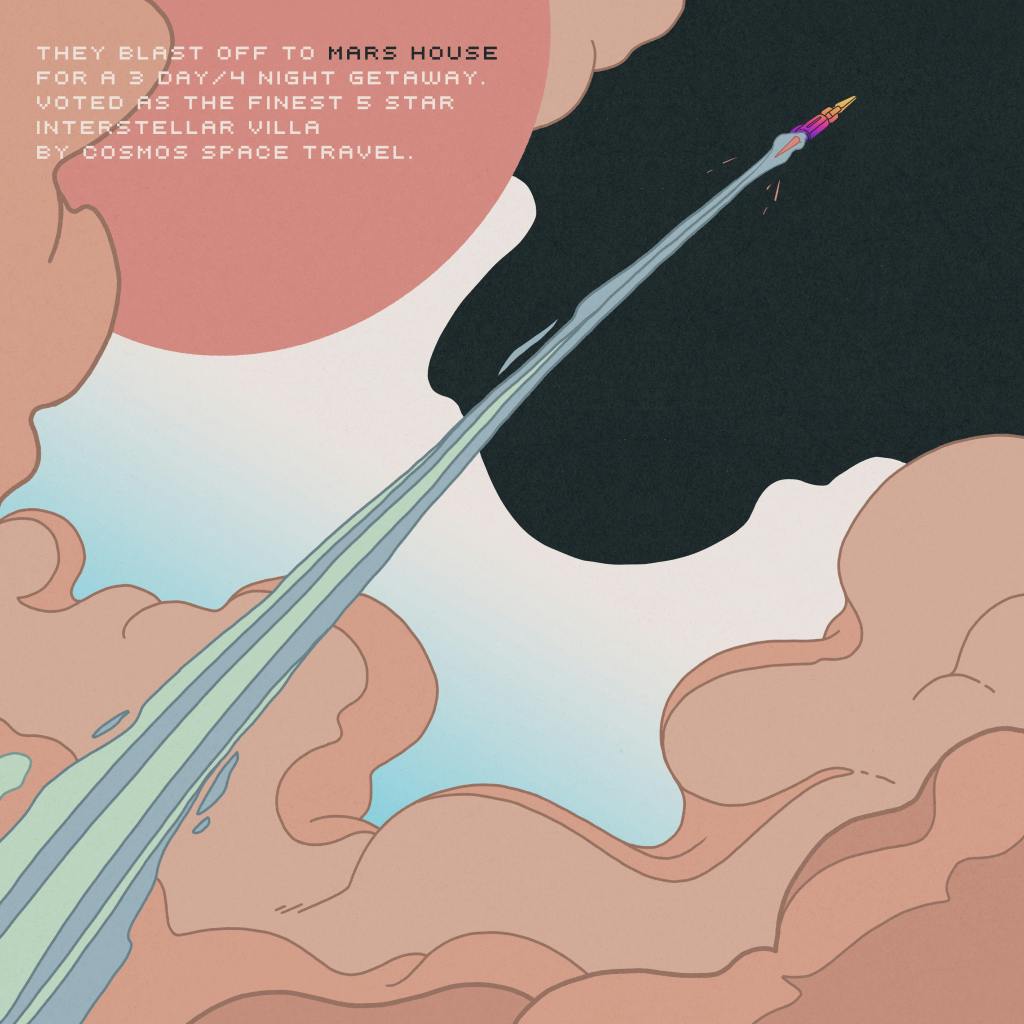 Krista Kim x Dirty Robot present: “Mars House: 3 days and 4 nights.” This is an illustrative story following an interstellar couple who take off for a weekend getaway to Mars House for healing, connection and an epic party. This NFT story has 7 parts, dropping everyday between Monday April 26th to May 1st. The complete story of 7 NFTs are offered as one complete body of work. Krista and Dirty Robot are fans of each other’s work with a common love for Manga, Tokyo and Japanese culture. Krista lived in Tokyo for 4 years and Dirty Robot is based there. They decided to begin working on this collaboration a week before Mars House was launched last month. The concept was to create an illustrated story, featuring Mars House as a protagonist. Mars House is a place of healing, inspiration and dreams. We wanted to capture memorable moments of an interstellar couple at the most iconic NFT house in the galaxy. We hope you enjoy following this project as much as we had creating it. Proceeds are donated to the Continuum Foundation to support healing and mental health initiatives globally
