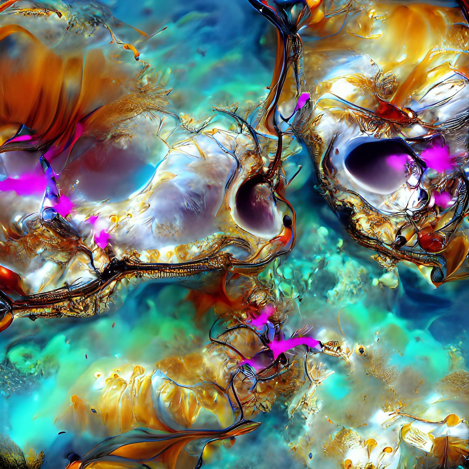 This piece came at a pivotal moment—halfway through Botto’s first year working with VQGAN + CLIP and minted just one week after the release of the diffusion-based modelDALL-E 2. Diffusion models became all the rage, and it seemed GANs were to be left behind, only to later regain their status as a distinct and celebrated aesthetic.