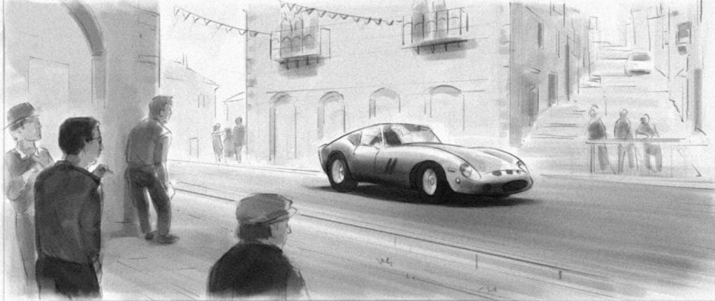 The Fine Art came together through a 5-stage design and development process which typically begins with researching the moment to be depicted. In choosing the specific Ferrari 250 GTO, the pale blue with a yellow stripe edition, atypical of the Ferrari paint scheme, but reflecting Swedish racer Ulf Norinder’s national colours was the chosen car. Navigating through hundreds of hours of research and the Targa Florio of 1964, a moment was identified to be re-created – when Ulf drove the Ferrari through the narrow streets of Sicily, with locals watching on dangerously close to the scene of action.