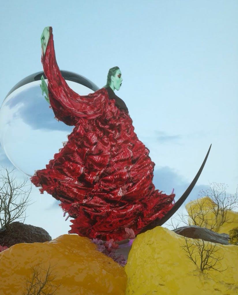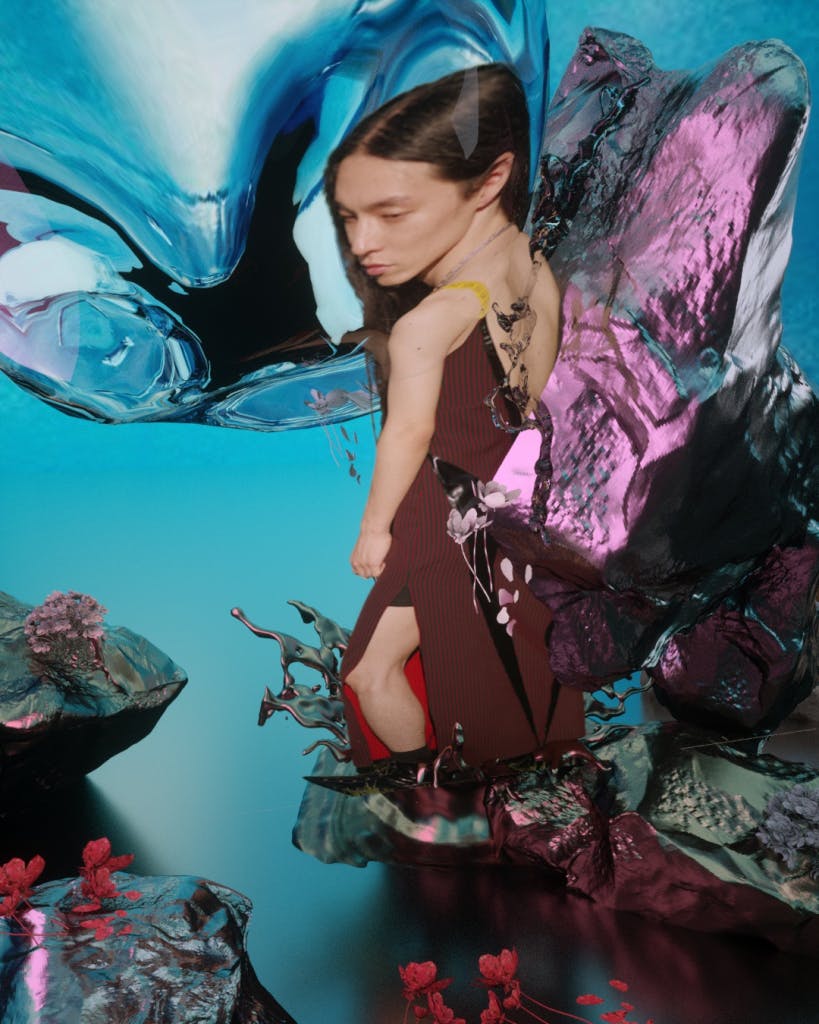 In an exploration of fluidity within society, artists Carolina Sarria and Giselle Angeles use digital art, 3d animation, and fashion to propel non-binary models into their environments. Humans are liquefied in their respective worlds, as light and time bend around them to reflect everlasting transformation.