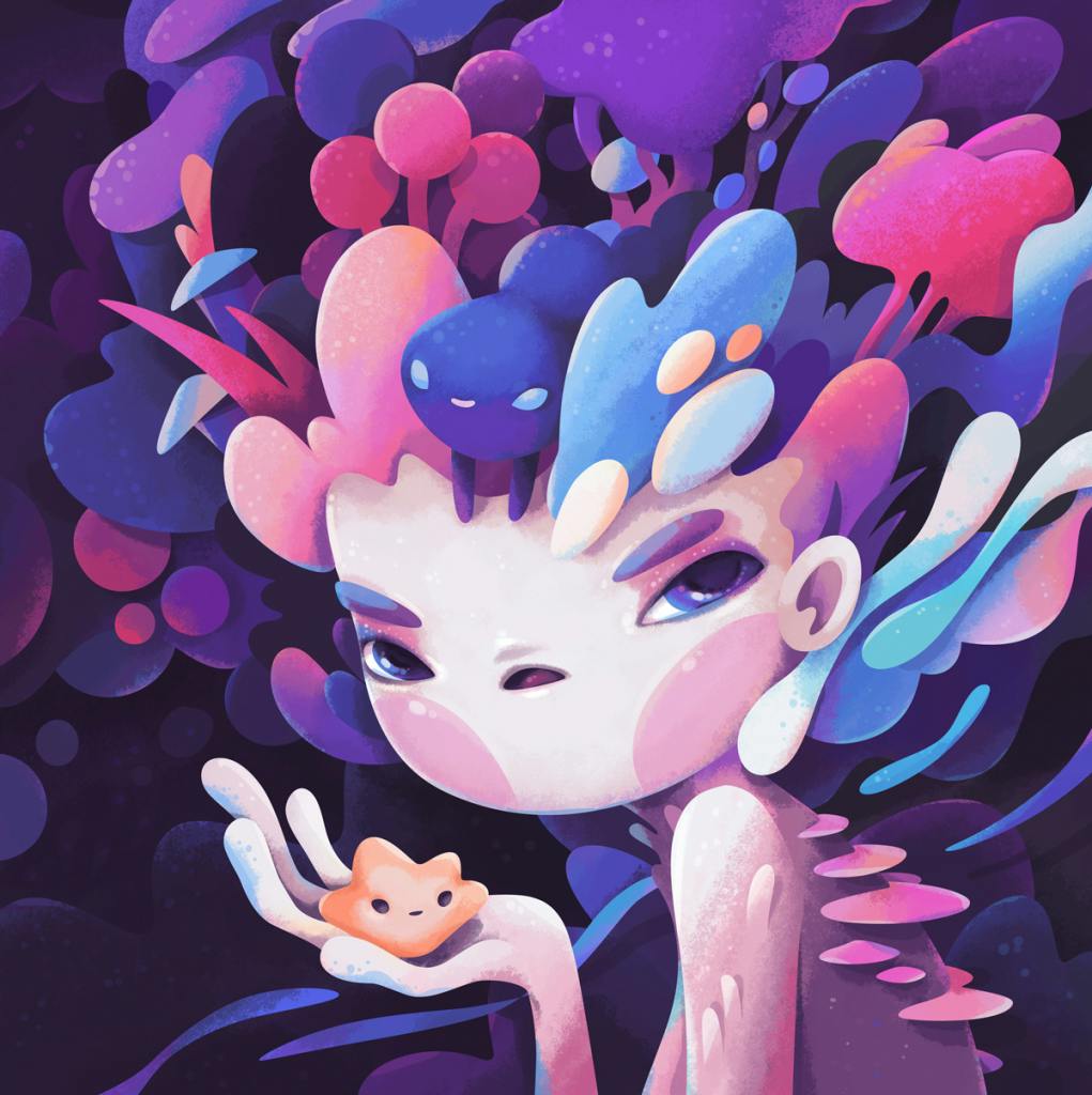 Alexandra Zutto is a Russian artist based in Brooklyn, working as a freelance Illustrator and Designer since 2009. Her style is very interesting. She uses vibrant and contrasted colours, flowing shapes and puts an impressive amount of tiny details in each work. Cute characters or creatures are also an important part of her visual universe. We sat virtually together and had a pleasant talk about her career path and interest in NFT what you can enjoy below