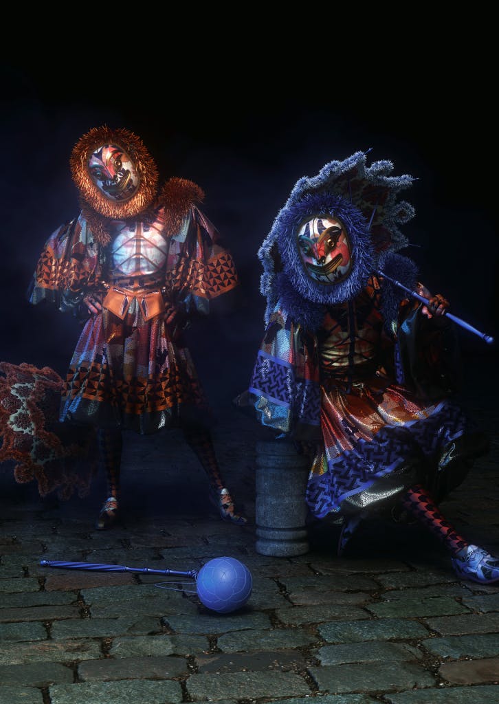 In my art practice, I often draw upon influences from mythology and folk-art giving it a modern/anachronistic twist. From mask to shoes, every detail was designed with the intention to explore and share this rich culture. In the process of diving deep into every detail, I unearthed the feeling of putting on a bate-bola mask for the first time: how the costume allowed me to express myself more freely. I hope this series provokes thoughts about identity that people across all cultures can relate to. What does it mean to be yourself and why does it matter? How many versions of you are there?