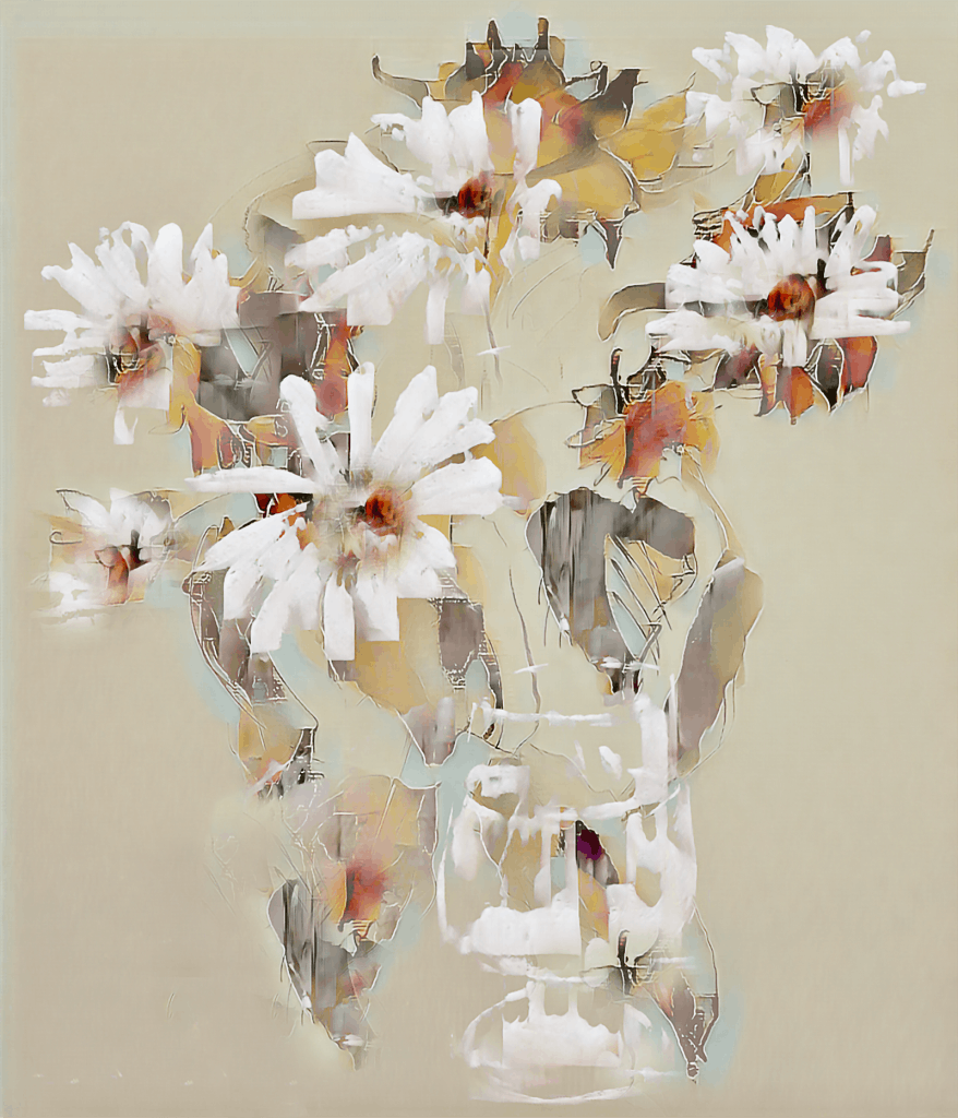 Sarin approaches GANs more as an experienced artist would approach any new medium: through lots and lots of experimentation and careful observation. Much of Sarin’s work is modeled on food, flowers, vases, bottles, and other “bricolage,” as she calls it. Working from still lifes is a time-honored approach for artists exploring the potential of new tools and ideas.