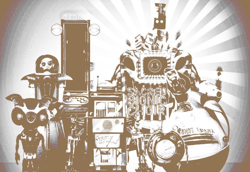 Alotta Money named the crew “Sacred Bionic Choir” and told his first story for one of the Robots which laid the ground for all the Robot’s stories.