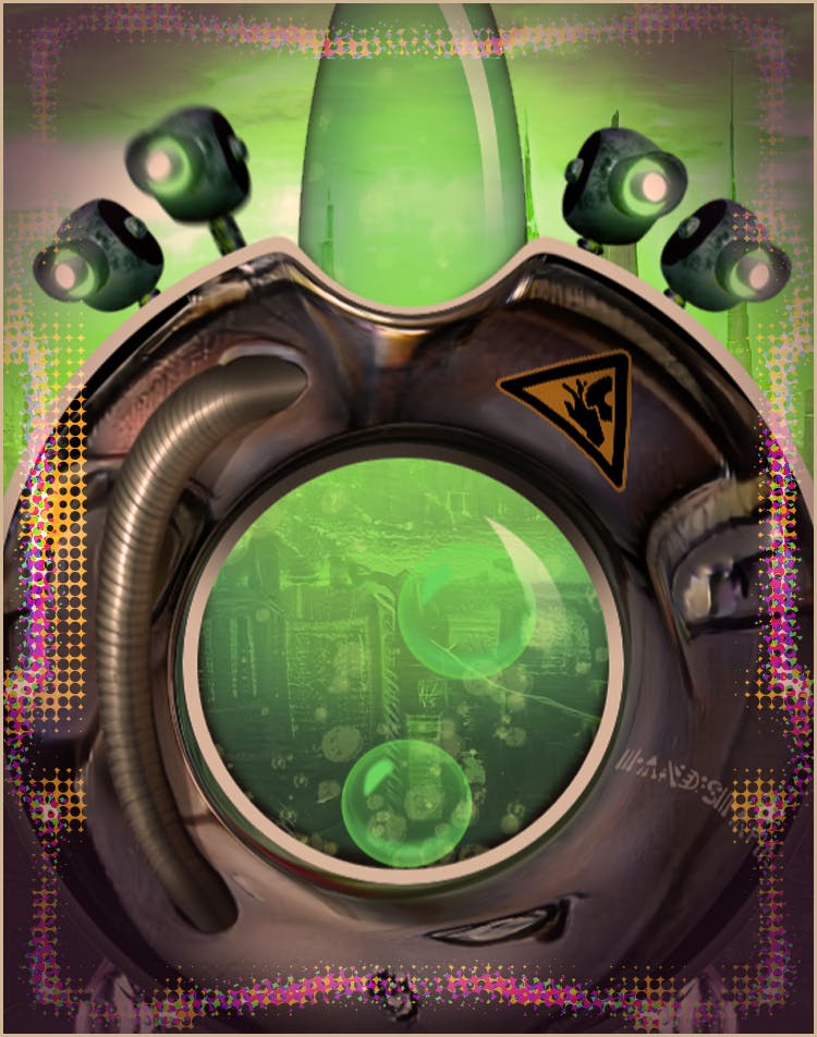 Gog Shooter is a military defense unit who caught a virus and became a pacifist. The type of ordnance used by Gog Shooter “Gogs” grant Gog Shooter eternal life and stop any of Gog Shooter’s parts from deteriorating.