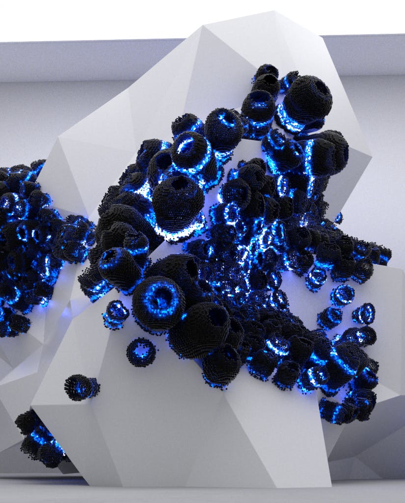 With hypnotic visuals and futuristic concepts, Maxim Zhestkov, for almost two decades, poses questions about the nature of the physical and digital worlds. His works are virtual sculptures based on computer simulations and algorithms that exist in bespoke digital galleries, challenging the traditional importance of museums as places for the perception of art. At the core of Maxim’s artworks lies realisticity, as every project is based on algorithms that accurately capture the laws of nature.