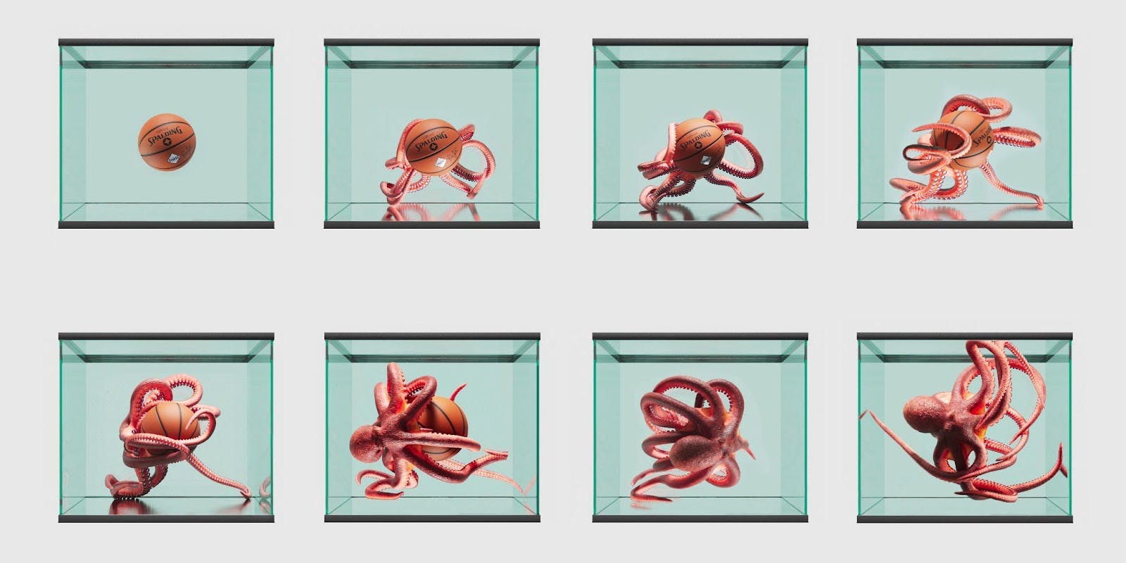 I am exploring the effect of this kind of disruption through a series of NFTs. My first work in the series is called ‘Partial Equilibrium’ and is based on the first American readymade by Jeff Koons which presented a single basketball floating in an aquarium. In ‘Partial Equilibrium’ viewers watch as an Octopus completely takes over Koon’s original artwork – superimposing a new narrative on the artwork.