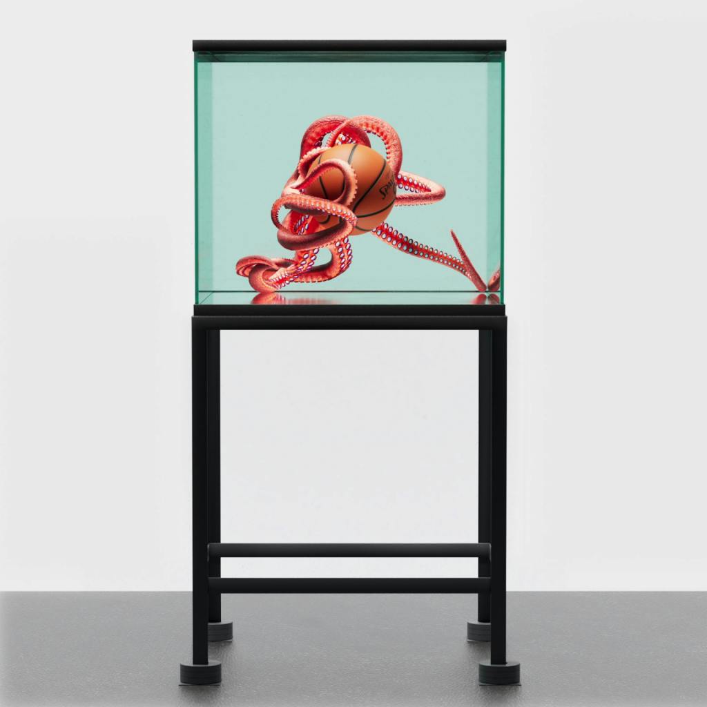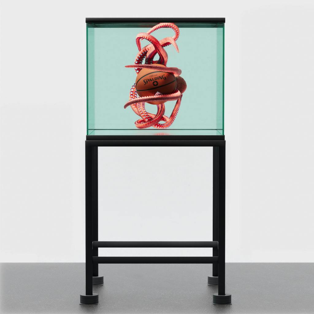 Brambilla’s NFT Partial Equilibriumconfronts viewers with the dismantling of Koons’ art object and makes way for a new one. Known as a creature in both Norse and Greek mythology as a symbol of destruction, an Octopus appears to overtake the original structure entirely, disrupting the basketball’s delicate state of equilibrium within the aquarium. As we watch the Octopus engulf the artwork we are reminded of the disruptors who paved the way for a new art form to exist and flourish.