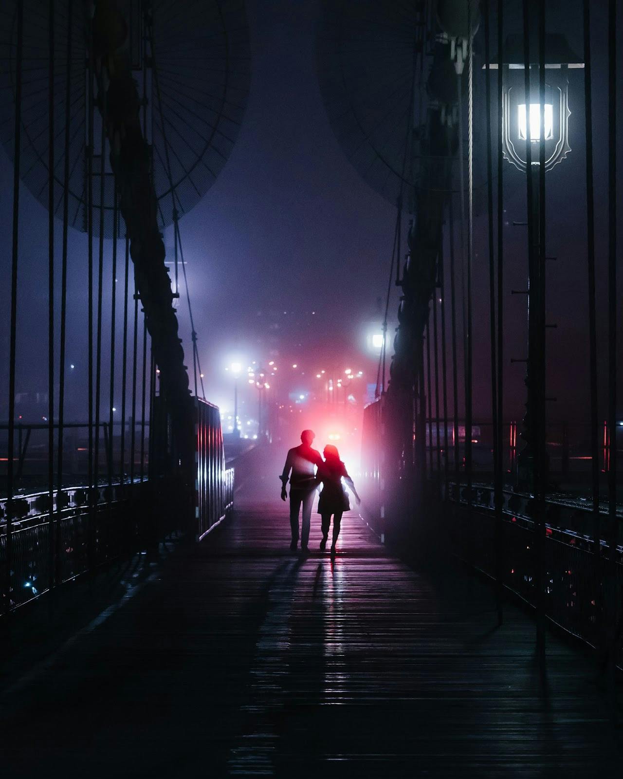 The first piece in this series is a candid photography, taken at the confluence of so many circumstances. A rare foggy night on the Brooklyn Bridge, beams of light cutting through the haze- after a few hours of incredible atmosphere, I was able to create this street photograph of two strangers- 100 percent in camera. In the metadata, a story unfolds: