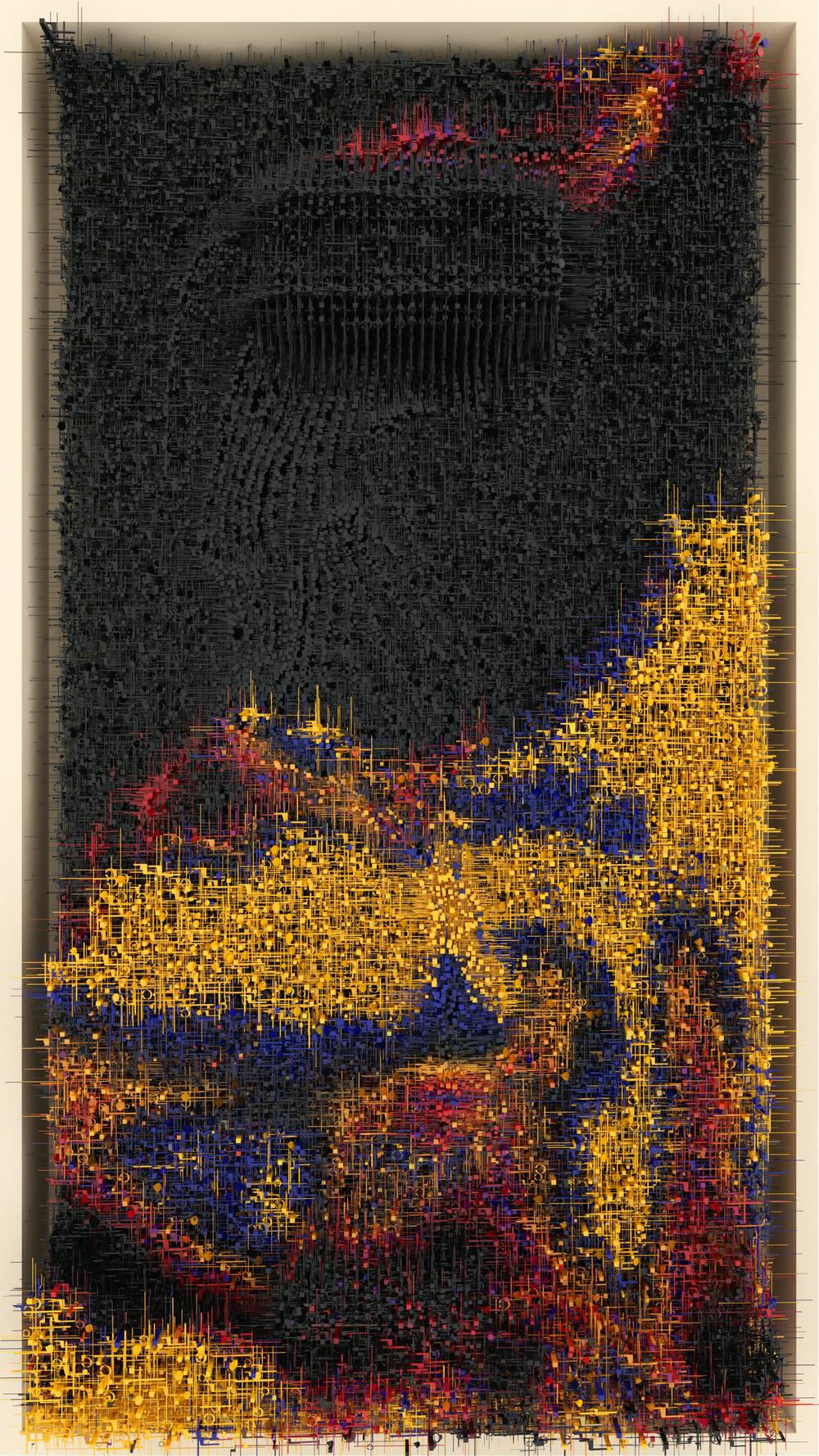 However, the critical difference lies in the medium and the interactive possibilities it offers. Both Burri and Kupka were limited by the static nature of their mediums. In contrast, the algorithms in "Neural Sediments" allow for dynamic interactions, driven by code and dependent on the viewer's perspective. Moreover, the incorporation of contemporary data-driven methods allows me to make the artwork more responsive to real-time cultural and environmental factors.
