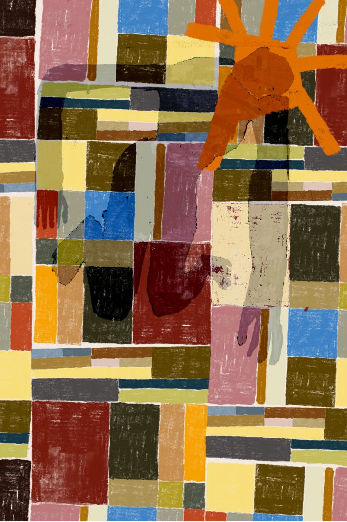 The paintings here reflect just that. I’ve honestly been inspired by other collections of 1/1/X and how artists either build stories or break them down using this format. The blueprint work for this collection featured an abstract figure that was pieced together using various colors and lines. I mimic the act of giving away pieces of myself by breaking down this blueprint into new forms giving them the ability to touch on multiple topics. This little body of mine looks to evoke a sense of fragmentation and disconnection that resonates deeply with the experience of grappling with daily life, mental health, physical health, etc. I invite the viewer to contemplate the myriad of ways in which we negotiate with our sense of self, whilst gluing together a sense of wholeness from the fragments of our lived experiences.